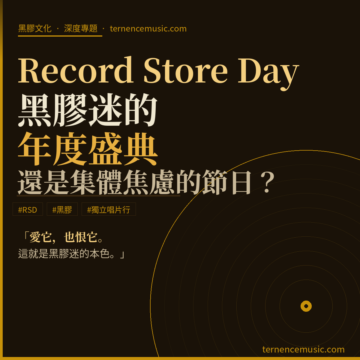 或許,對黑膠迷而言,接受 RSD 的矛盾,本身就是收藏文化的一部分。就像收藏者理解某張版本的雜音是它年代的印記,RSD 的種種缺陷,也成了這個節日身份的一部分——無法切割,也難以取代。