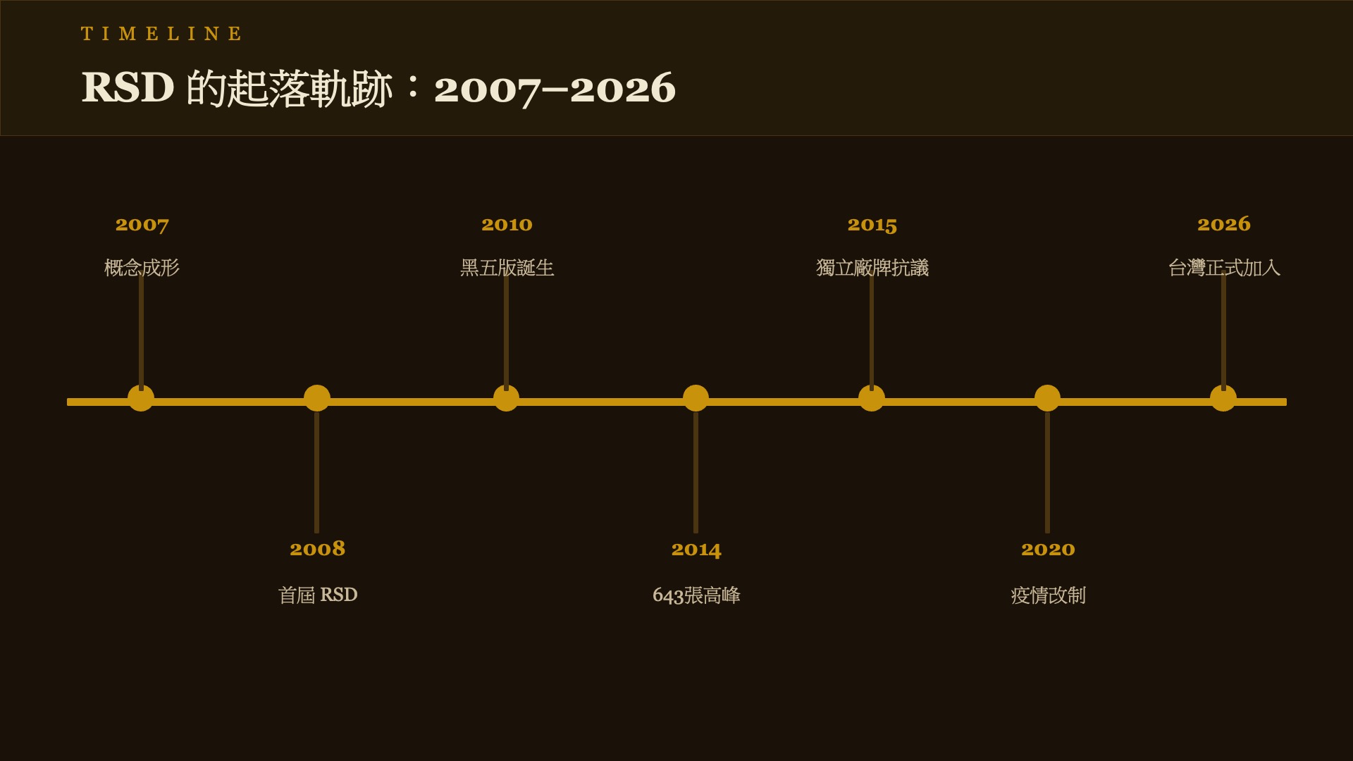 2007 年,緬因州一家獨立唱片行 Bull Moose Music 的員工 Chris Brown,在一場唱片行業者聚會中發出了一封主旨叫做「idea」的電子郵件。那年,美國全境黑膠銷量不到一百萬張,英國甚至只有二十萬張,稀薄到幾乎不在產業報告上留下痕跡。