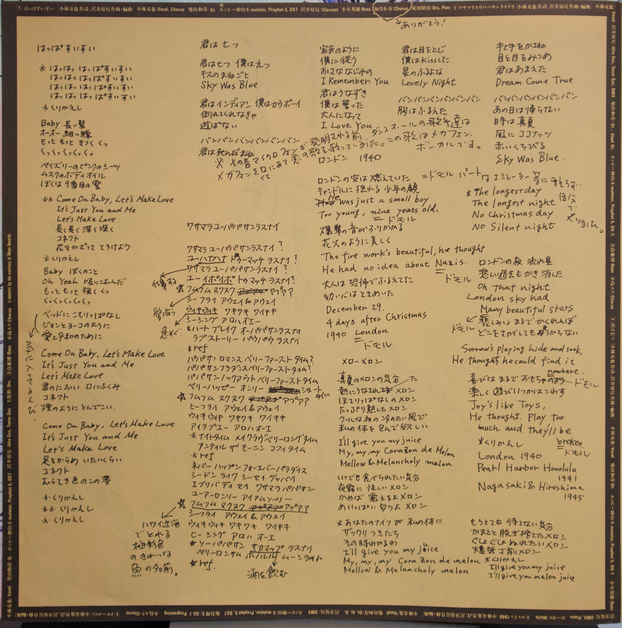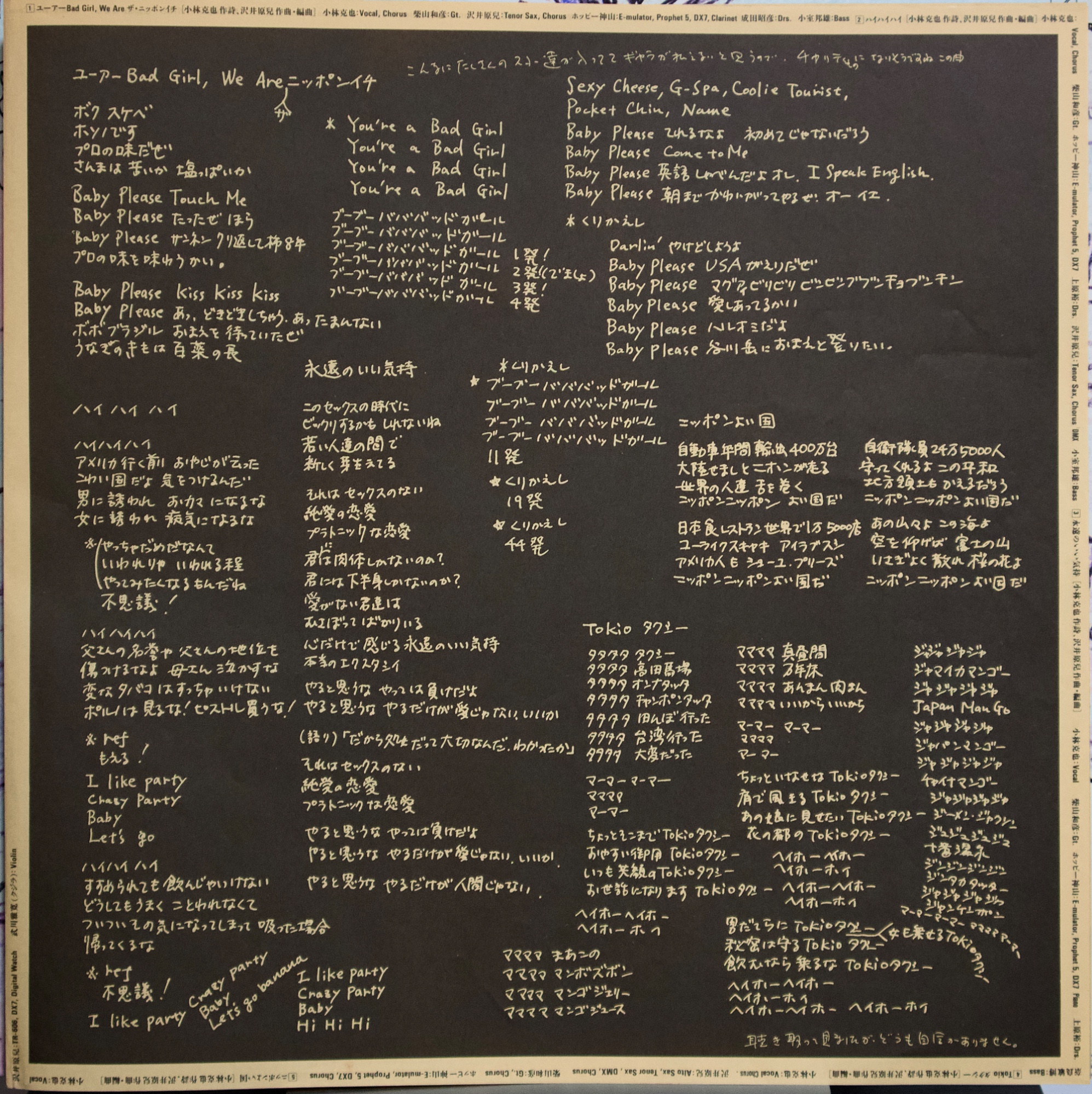 小林克也 —《はっぱすいすい》(1985) 1985 年發行的《はっぱすいすい》,是日本知名 DJ、主持人與文化人物小林克也以「小林克也&ザ・ナンバーワン・バンド」名義發表的專輯之一,也是這個樂團企劃的重要作品。專輯發行於日本流行文化高度商業化與媒體化的 1980 年代中期,當時日本正處於泡沫經濟前夕,電視、廣告、流行音樂、雜誌與都市文化快速發展,西方文化與日本本土文化大量混合。《はっぱすいすい》正是在這樣的文化背景下誕生的一張作品,它不只是流行音樂專輯,更像是一張帶有都市文化觀察與媒體感的音樂作品。 從音樂風格來看,這張專輯以 1980 年代日本 New Wave 與 Synth Pop 為核心,融合 Funk、Dance Pop 與帶有 City Pop 都市題材的流行編曲。專輯大量使用當時流行的電子樂器,如 Prophet-5、DX7、Emulator 等合成器,搭配電子鼓與具有 Funk 感的貝斯線條,使整體聲音具有強烈的 1980 年代電子流行風格。歌詞方面則大量混用日文與英文,內容包含都市生活、文化符號、歷史題材與帶有幽默與諷刺意味的語言,呈現出與一般流行歌手專輯不同的文化拼貼風格。專輯中的〈ユーアー Bad Girl, We Are ザ・ニッポンイチ〉甚至被視為對當時世界性公益歌曲〈We Are the World〉的戲仿作品,展現出小林克也對流行文化與媒體現象的觀察與幽默感。 因此,《はっぱすいすい》在日本流行音樂史中的位置,並非主流 City Pop 名盤,而更接近日本 New Wave、媒體文化與跨界音樂企劃的作品。它反映了 1980 年代東京的都市文化、媒體文化與流行音樂環境,是一張具有時代氣味與文化背景的作品。 --- 【專輯曲序】 1.〈はっぱすいすい〉 詞:小林克也/曲:沢井原児 編曲:沢井原児 製作人:小林克也、沢井原児 2.〈ワサマラユウパパサンラスナイ〉 詞:小林克也/曲:沢井原児 編曲:沢井原児 3.〈君は七つ〉 詞:小林克也/曲:沢井原児 編曲:沢井原児 4.〈ロンドン1940〉 詞:小林克也/曲:沢井原児 編曲:沢井原児 5.〈メローメロン〉 詞:小林克也/曲:沢井原児 編曲:沢井原児 6.〈ユーアー Bad Girl, We Are ザ・ニッポンイチ〉 詞:小林克也/曲:沢井原児 編曲:沢井原児 7.〈ハイハイハイ〉 詞:小林克也/曲:沢井原児 編曲:沢井原児 8.〈永遠のいい気持〉 詞:小林克也/曲:沢井原児 編曲:沢井原児 9.〈Tokio タクシー〉 詞:小林克也/曲:沢井原児 編曲:沢井原児 10.〈ニッポンよい国〉 詞:小林克也/曲:沢井原児 編曲:沢井原児 --- 【專輯團隊】 製作人:小林克也、沢井原児 錄音師:森山武行 助理錄音師:岡崎裕司、亀田秀司 Executive Producer:松岡昭典 Promotion Director:吉廣美介 Art Director:吉良良良 Graphic Design:永井裕明 攝影:鋤田正義 Illustration:一条伸一 --- 【重新認識《はっぱすいすい》】 如果要理解《はっぱすいすい》這張專輯的價值,不能只把它當成一張 1980 年代的流行唱片,而應該把它放在當時日本媒體文化與都市文化的背景中來看。這張專輯之所以值得重聽,在於它不只是音樂作品,而是一種文化時代的聲音紀錄。專輯中的歌曲有些像廣告音樂、有些像電視節目配樂、有些像 New Wave 樂團作品,又有些帶有 City Pop 的都市氣氛,整體呈現出一種非常典型的 1980 年代東京媒體文化聲音。 在聲音與編曲方面,專輯大量使用合成器與電子樂器,節奏帶有 Funk 與 Dance Pop 的律動,但旋律與歌曲結構又帶有 New Wave 的實驗性與戲劇性。整張專輯聽起來不像單一樂團的風格,而像一個集合廣告、電視、都市生活與流行音樂元素的聲音拼貼。這也是 The No.1 Band 這個企劃的特色,它不像一般搖滾樂團或流行歌手,而更像一個媒體與音樂結合的創作計畫。 若要從幾首關鍵曲目開始聽,可以從〈はっぱすいすい〉開始,這首歌節奏強烈、語言重複,帶有口號與廣告音樂的感覺;〈メローメロン〉則是一首非常具有 80 年代電子流行風格的作品,旋律與編曲帶有甜美而略帶奇妙的氣氛;〈Tokio タクシー〉描寫東京都市夜晚的移動與城市節奏,是整張專輯最具有都市感的歌曲之一;而〈ユーアー Bad Girl, We Are ザ・ニッポンイチ〉則是一首帶有戲仿意味的作品,展現出這張專輯幽默與諷刺的一面。 整體來說,這張專輯的情緒既輕鬆又帶點距離感,既流行又帶點實驗性,適合在夜晚、開車、整理唱片或閱讀時播放。它不像典型 City Pop 那樣浪漫,也不像純 New Wave 那樣冷調,而是在兩者之間形成一種具有媒體文化氣味的音樂風格。 從歷史位置來看,《はっぱすいすい》可以被視為 1980 年代日本 New Wave 與媒體文化跨界音樂的一個代表作品。它不一定是最著名的專輯,但卻非常能反映那個年代東京的流行文化、媒體文化與都市生活方式,因此對於喜歡日本 80 年代音樂、City Pop、New Wave 或和モノ唱片的聽眾來說,是一張非常值得重新認識的作品。 小林克也出生於 1941 年,是日本著名的電台 DJ、翻譯、電視主持人與媒體人物。他在 1970 年代以 DJ 身分活躍,向日本聽眾介紹大量西洋流行音樂,並以英語能力與幽默的主持風格聞名。1980 年代他主持的音樂電視節目《Best Hit USA》成為介紹西洋流行音樂的重要節目之一。他在 1982 年組成「小林克也&ザ・ナンバーワン・バンド」,以流行音樂形式結合媒體文化、都市文化與語言幽默創作音樂作品。《はっぱすいすい》正是在這個音樂企劃時期的重要專輯之一,也代表了他從 DJ、媒體人跨界到音樂創