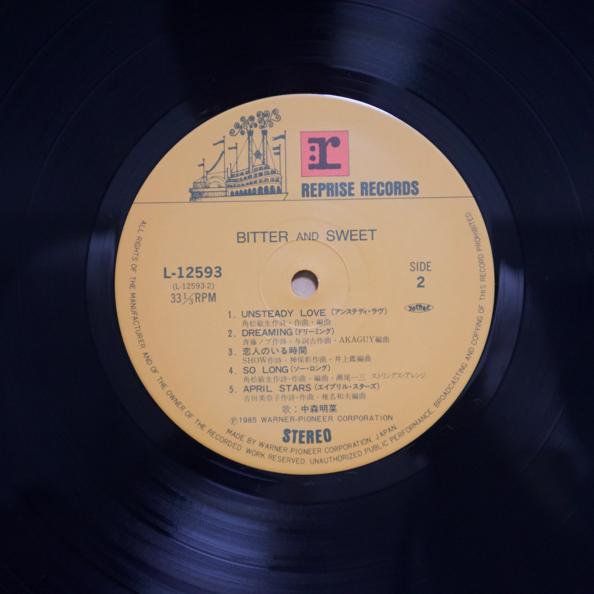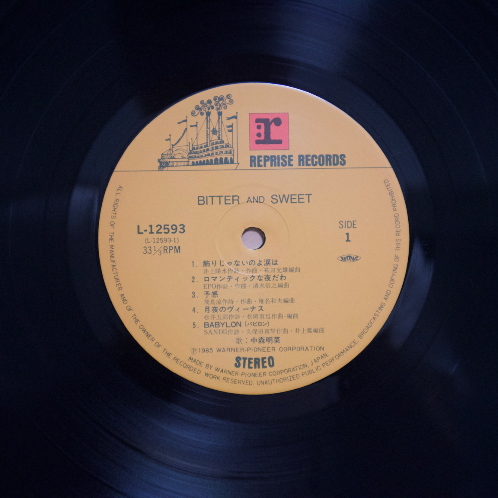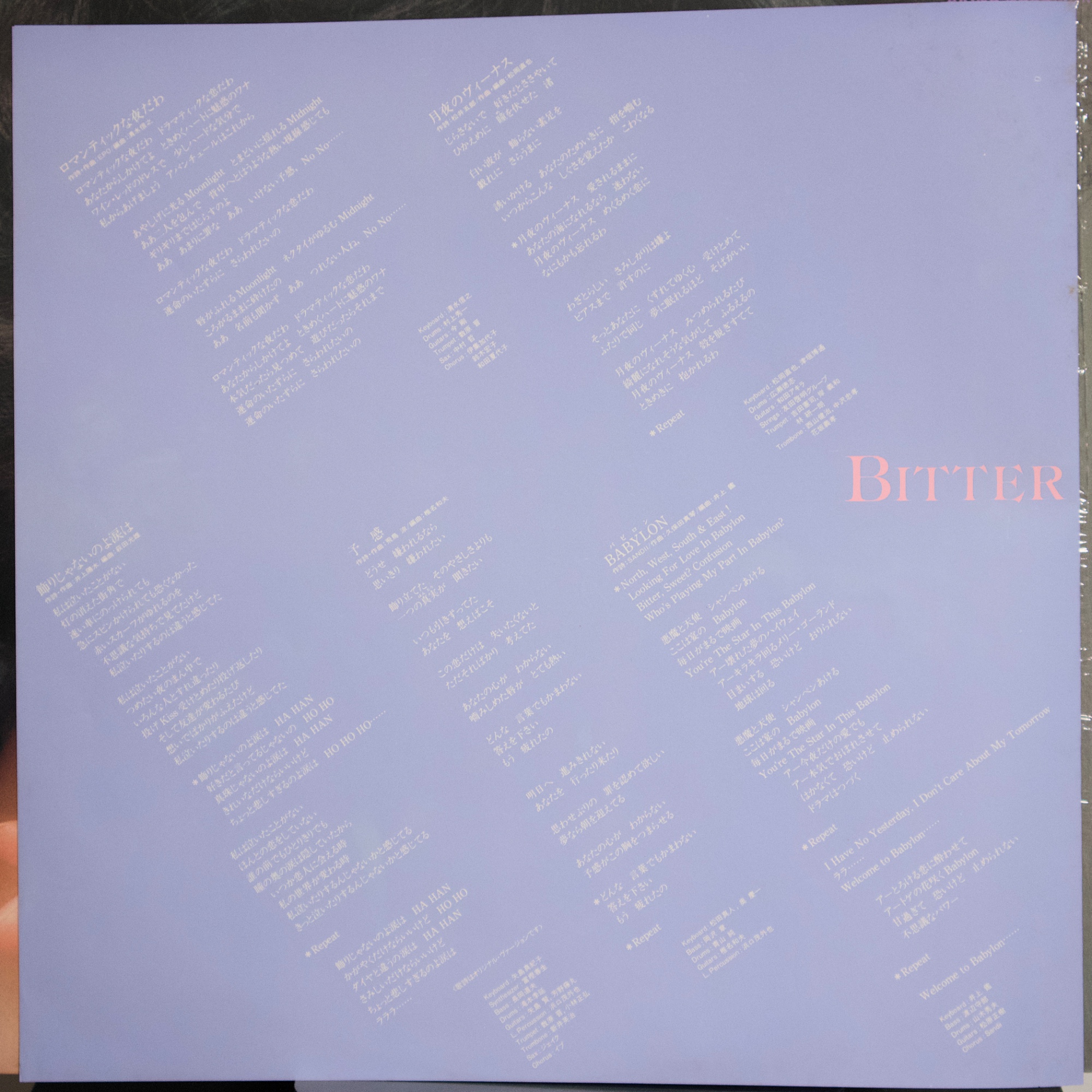 中森明菜《BITTER AND SWEET》(1985) 1985年發行的《BITTER AND SWEET》,是中森明菜在1980年代中期逐步完成音樂轉型的重要專輯之一。從早期偏向偶像歌謠的作品,到《ANNIVERSARY》、《POSSIBILITY》等逐漸成熟的流行專輯之後,中森明菜在這張專輯中確立了更具都會氣息、夜晚情緒與成熟女性形象的音樂方向。1980年代中期正是日本流行音樂高度成熟的時期,City Pop、AOR、Fusion 與 Singer-Songwriter 等不同音樂風格與錄音室製作體系交會發展,許多一線作曲家、編曲家與錄音室樂手共同參與流行專輯製作。《BITTER AND SWEET》正是在這樣的音樂環境下完成的一張專輯,不僅收錄〈飾りじゃないのよ涙は〉、〈予感〉等代表作品,也展現出中森明菜由偶像歌手轉變為專輯型歌手的過程。若放在她整體專輯脈絡中來看,這張作品位於早期偶像形象與後期更具戲劇性與藝術性作品之間,是一張具有承先啟後意義的重要專輯。 【專輯曲序】 1.〈飾りじゃないのよ涙は〉 詞:井上陽水/曲:井上陽水 編曲:萩田光雄 2.〈ロマンティックな夜だわ〉 詞:EPO/曲:EPO 編曲:清水信之 3.〈予感〉 詞:飛鳥涼/曲:飛鳥涼 編曲:椎名和夫 4.〈月夜のヴィーナス〉 詞:松井五郎/曲:松岡直也 編曲:松岡直也 5.〈BABYLON〉 詞:SANDII/曲:久保田利伸 編曲:井上鑑 6.〈UNSTEADY LOVE〉 詞:角松敏生/曲:角松敏生 編曲:角松敏生 7.〈DREAMING〉 詞:斉藤ノブ/曲:与崎古作 編曲:AKAGUY 8.〈恋人のいる時間〉 詞:SHOW/曲:神保彰 編曲:井上鑑 9.〈SO LONG〉 詞:角松敏生/曲:角松敏生 編曲:瀬尾一三 10.〈APRIL STARS〉 詞:吉田美奈子/曲:椎名和夫 編曲:椎名和夫 【專輯團隊】 主要編曲: 萩田光雄 清水信之 椎名和夫 松岡直也 井上鑑 角松敏生 瀬尾一三 AKAGUY 錄音室演奏(Session Musicians): Drums/Bass/Guitar/Keyboards/Synthesizer/Strings/Percussion/Chorus 等錄音室樂手參與各曲錄音 演唱:中森明菜 【重新認識《BITTER AND SWEET》】 《BITTER AND SWEET》之所以值得重聽,不只是因為收錄了幾首知名歌曲,而是在於它是一張完成度很高、具有整體氣氛與專輯結構的作品。這張專輯並不是以單曲為中心的歌曲集合,而是從作曲家選擇、編曲風格到曲序安排,都可以看出是以整張專輯的聆聽體驗為前提來製作的作品。若把中森明菜1980年代的專輯放在一起看,《BITTER AND SWEET》往往被視為她進入成熟期後最具有都會氣息的一張專輯。 這張專輯最特別的地方之一,在於參與創作與編曲的音樂人組成。井上陽水、EPO、飛鳥涼、角松敏生、久保田利伸、松岡直也、井上鑑、椎名和夫、神保彰、吉田美奈子等人分別來自不同的音樂圈,包括Singer-Songwriter、City Pop、AOR、Fusion與錄音室樂手系統。這使得專輯中的每一首歌都有不同的音樂背景與風格來源,但因為都在同一個時代的錄音室製作體系下完成,整體聽感仍然維持一致。從這個角度來看,《BITTER AND SWEET》可以說是一張集合1980年代中期日本都會音樂創作圈的重要作品。 在聲音與編曲上,專輯具有非常鮮明的夜晚都市氣氛。電鋼琴、合成器、乾淨的電吉他與成熟的節奏組構成整張專輯的聲音骨架,錄音室樂手的演奏也讓音樂帶有Fusion與AOR的質感,而中森明菜偏冷、帶距離感的聲線則讓整體氣氛更加成熟而內斂。像〈BABYLON〉、〈UNSTEADY LOVE〉與〈恋人のいる時間〉可以聽到濃厚的都會流行與City Pop氣息,而〈予感〉與〈APRIL STARS〉則保留了抒情歌曲的旋律感與情緒深度,使專輯在節奏與抒情之間保持平衡。 若以黑膠LP曲序來看,這張專輯的結構更加明顯。Side 1 從〈飾りじゃないのよ涙は〉開始,建立都市與戲劇性的氣氛,之後逐漸轉入夜晚與情緒色彩較強的歌曲,最後以〈BABYLON〉收尾,形成較為外向與都市感的前半部。Side 2 則整體情緒轉為較為私密與內向,〈UNSTEADY LOVE〉、〈恋人のいる時間〉與〈SO LONG〉一路將專輯帶入更深的夜晚氛圍,最後由〈APRIL STARS〉作為收尾,使整張專輯像是一段從城市夜晚走向清晨的情緒流動。這種前後兩面的情緒配置,是黑膠時代專輯思維的重要部分,也讓《BITTER AND SWEET》作為一張專輯成立,而不只是歌曲集合。 在中森明菜的專輯歷程中,《BITTER AND SWEET》位於非常關鍵的位置。它不像早期作品仍帶有較明顯的偶像歌謠輪廓,也不像後來的《D404ME》、《CRIMSON》那樣走向更強烈的戲劇性與藝術性,而是處於音樂成熟與聲音風格確立的中心位置。這張專輯既保有流行性,也具有音樂製作上的成熟度,因此多年之後再回頭聆聽,《BITTER AND SWEET》仍然常被視為中森明菜1980年代作品中最具有都會夜色氣質的一張專輯之一。
