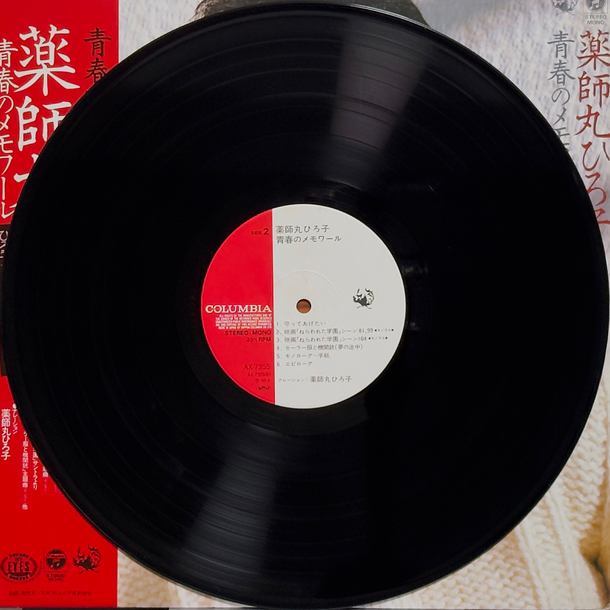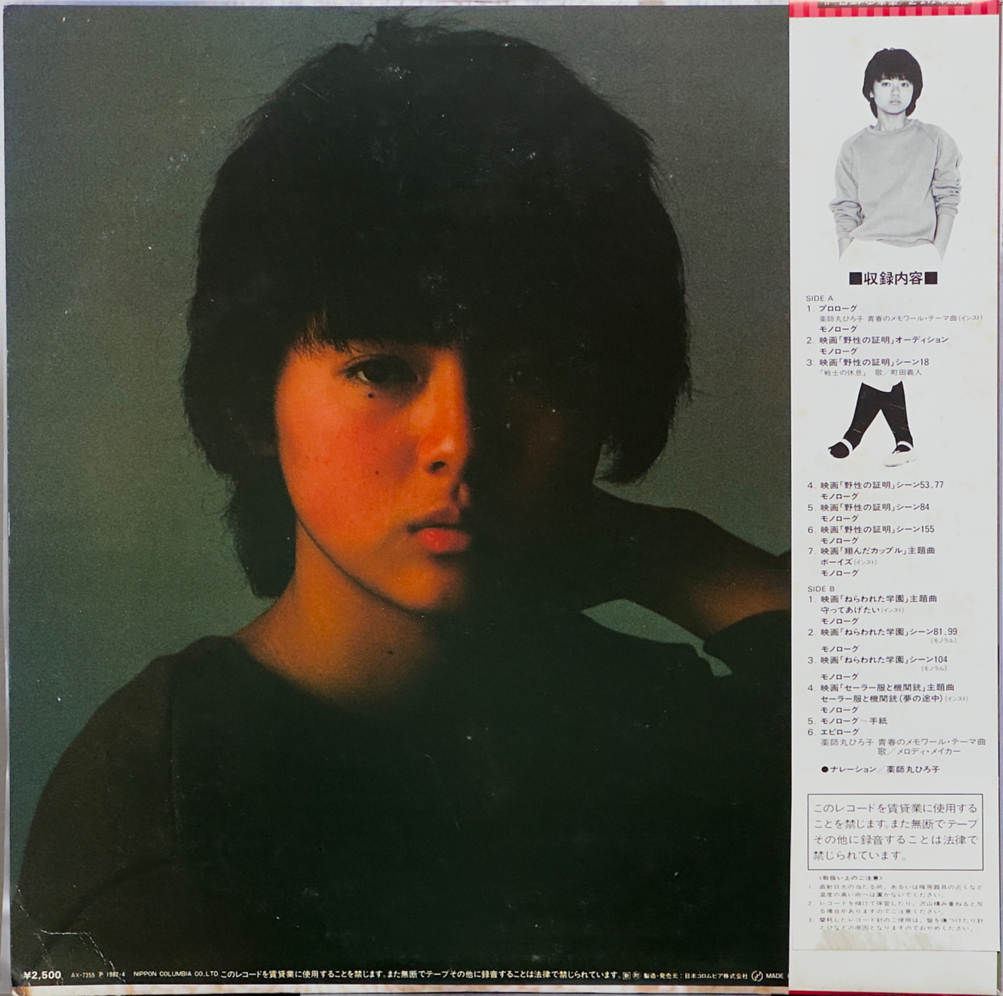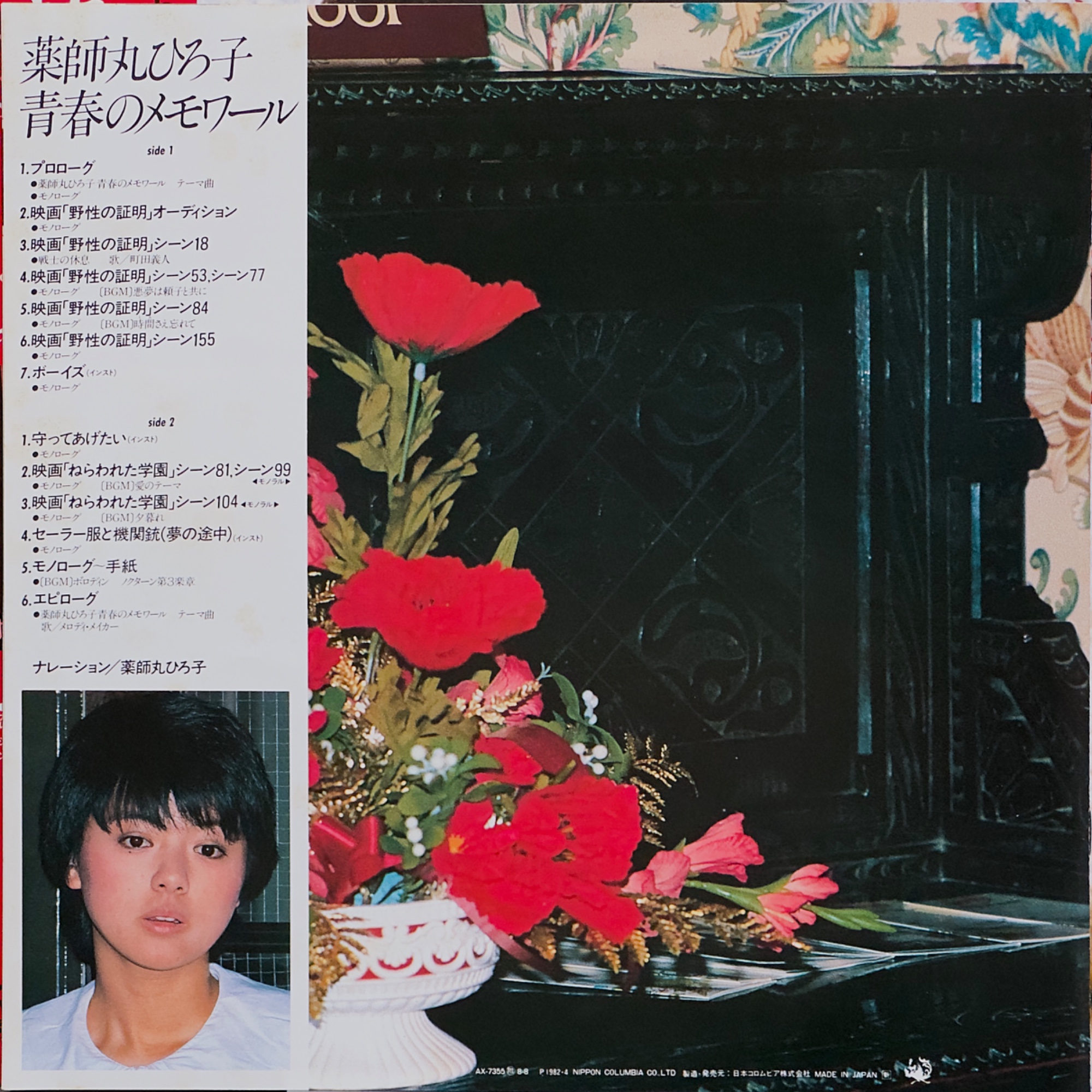 薬師丸ひろ子《青春のメモワール》(1982) 《青春のメモワール》發行於 1982 年 4 月 21 日,正好位在藥師丸ひろ子以電影明星身分迅速走紅的關鍵時期。當時的她仍是 17 歲,卻已經因《野性の証明》《翔んだカップル》《ねらわれた学園》《セーラー服と機関銃》接連建立起鮮明的銀幕形象。也因此,這張作品從一開始就不是一般意義上的新歌專輯,而是一張以她早期電影歷程為主軸整理而成的企劃盤。唱片將電影場景、旁白、背景音樂與主題曲器樂版重新編排,做成一張可以反覆播放的聲音紀錄冊,也讓封面 obi 上的「17歳現在完了」有了非常具體的內容。 要理解這張專輯,先認識它選入的幾部電影很重要。《野性の証明》是藥師丸ひろ子最早被大眾廣泛看見的重要作品,帶有強烈的懸疑與沉重氣氛,也讓她以少女角色的姿態進入角川電影體系。《翔んだカップル》則把她帶進青春片的語境,讓觀眾看見她更貼近日常、更自然的銀幕魅力。《ねらわれた学園》把校園、超能力與青春偶像形象結合起來,進一步強化了她在 1980 年代初日本流行文化中的獨特位置。到了《セーラー服と機関銃》,女高中生與幫派世界相撞的反差設定,則幾乎把她推上時代代表人物的位置。把這四部片連起來看,就會明白《青春のメモワール》不是隨意拼貼,而是在整理她從電影少女走向全民級明星的早期軌跡。 這張唱片的重要性,也正在於它保存的不是單一電影的餘韻,而是藥師丸ひろ子在某個特定時刻的整體魅力。它既不是純原聲帶,也不是純歌曲專輯,而是電影、偶像、旁白與記憶共同構成的混合作品。1982 年 5 月,這張作品登上 Oricon 週間 LP 榜首位,也說明當時的聽眾購買它,不只是為了聽歌,更是為了收藏那個時代的電影記憶、明星聲音與青春想像。從今天回看,《青春のメモワール》不一定是最適合拿來認識她歌手面貌的第一張作品,卻是理解她為什麼能成為 1980 年代初日本青春文化象徵的一把重要鑰匙。 【專輯曲序】 SIDE 1 1.〈プロローグ〉 2.〈映画「野性の証明」オーディション〉 3.〈映画「野性の証明」シーン18〉 4.〈映画「野性の証明」シーン53、77〉 5.〈映画「野性の証明」シーン84〉 6.〈映画「野性の証明」シーン155〉 7.〈ボーイズ〉 作曲:木森敏之 編曲:島津秀雄 映画《翔んだカップル》主題曲 (本專輯收錄為器樂版) SIDE 2 1.〈守ってあげたい〉 作詞:松任谷由実/作曲:松任谷由実 編曲:松任谷正隆 映画《ねらわれた学園》主題曲 (本專輯收錄為器樂版) 2.〈映画「ねらわれた学園」シーン81、99〉 3.〈映画「ねらわれた学園」シーン104〉 4.〈セーラー服と機関銃(夢の途中)〉 作詞:来生えつこ/作曲:来生たかお 編曲:星勝 映画《セーラー服と機関銃》主題曲 (本專輯收錄為器樂版) 5.〈モノローグ―手紙〉 6.〈エピローグ〉 歌:メロディ・メーカー 【專輯團隊】 ナレーション:薬師丸ひろ子 製作:角川春樹 構成:岡田晋吉/坂東直/薬師丸ひろ子 プロデューサー:岡田晋吉/高桑忠男 プロデューサー補:大川裕 マネージメント:黒木マリ子 制作担当:鵜島稔 ミキサー:上芝基晴/三浦克洋 アシスタント・ミキサー:小野秋夫/飯塚和昭/田口裕治 ジャケット・デザイン:今野昭 写真:小島由起夫 企画・制作:小学館ハローレコード 協力:角川春樹事務所/日本コロムビア/日活スタジオ・センター/アバコ・スタジオ 録音:岡田晋吉事務所/日活スタジオ・センター/日本コロムビア・スタジオ 【重新認識《青春のメモワール》】 這張專輯值得重聽,不是因為它提供了多少完整歌唱版名曲,而是因為它把藥師丸ひろ子最早期、最不可替代的電影青春形象完整封存了下來。後來人們談她,常會從更成熟的歌手作品、較完整的錄音室專輯,甚至她往後的演員生涯開始回顧;但《青春のメモワール》記錄的,是她還在十七歲、聲音與銀幕形象仍緊密重疊的那個瞬間。這種狀態非常短暫,也因此格外珍貴。 從聲音構成來看,這張唱片的重點不是單首作品的獨立完成度,而是整體的敘事氛圍。場景片段、旁白、BGM 與主題曲器樂版彼此交錯,使聽者聽見的不是單純旋律,而是一整套與藥師丸ひろ子相關的電影記憶。像〈ボーイズ〉、〈守ってあげたい〉、〈セーラー服と機関銃(夢の途中)〉在這裡都不是作為完整流行單曲被端出,而是作為記憶觸發點,嵌進整張唱片的情緒流動裡。這種做法讓《青春のメモワール》更接近一部用聲音剪接而成的青春回顧片,而不是一般以歌曲主導的專輯。 SIDE 1 幾乎把重心都放在《野性の証明》相關素材上,這樣的安排很有象徵性。因為《野性の証明》是她被觀眾真正看見的起點,也是她從銀幕少女形象出發的根源。專輯把試鏡、場景、旁白與插入內容併置在一起,讓這一面聽起來像是在回到那段記憶的起點。到了最後接上作為《翔んだカップル》主題曲的〈ボーイズ〉,整體氣氛又從較沉重的電影世界,稍微轉向更接近青春片的明亮輪廓。 SIDE 2 的方向則更集中地指向她在 1981 年前後已經成形的明星面貌。《ねらわれた学園》代表的是校園、奇幻與青春偶像感的結合,片中的不安、神秘與少女性格,使她的形象不再只是單純清純,而帶有更鮮明的時代感。《セーラー服と機関銃》則把這種魅力推到最具代表性的階段。高中女生與幫